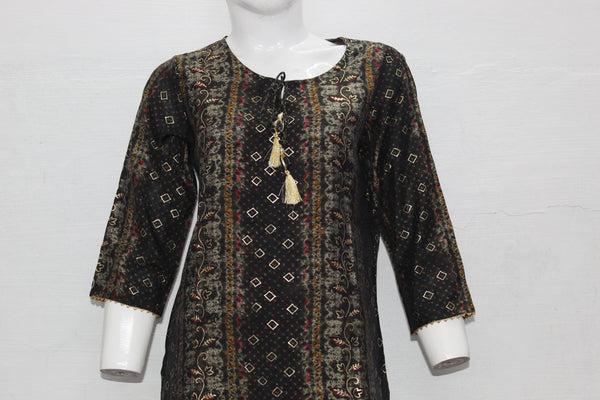 It's a Rayon silk material comes with top, bottom, dupatta and available sizes S,M,L,XL
